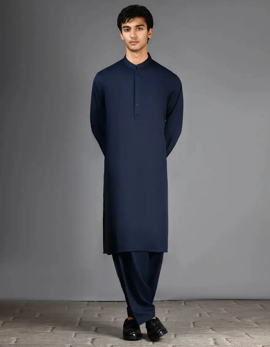 NAVY BLUE BLENDED KURTA TROUSER | JJKP-A-30780