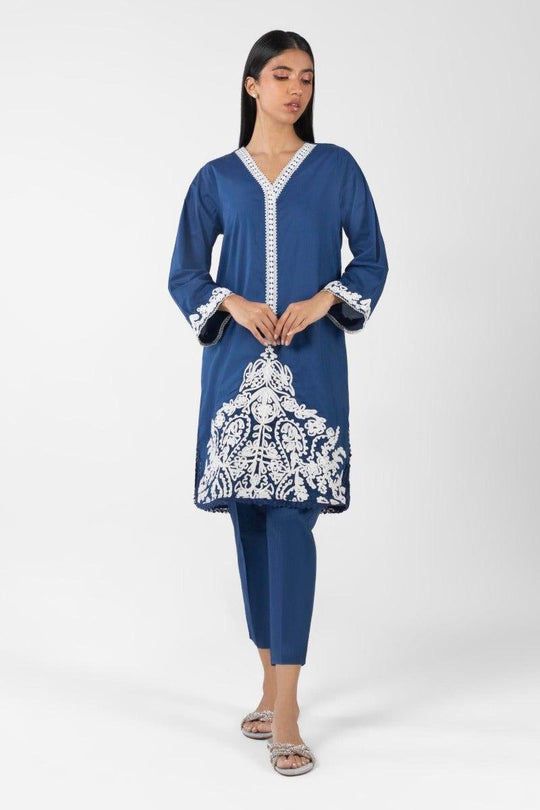 Description: Embroidered Royalty: A Majestic Combination of Royal Blue and White.